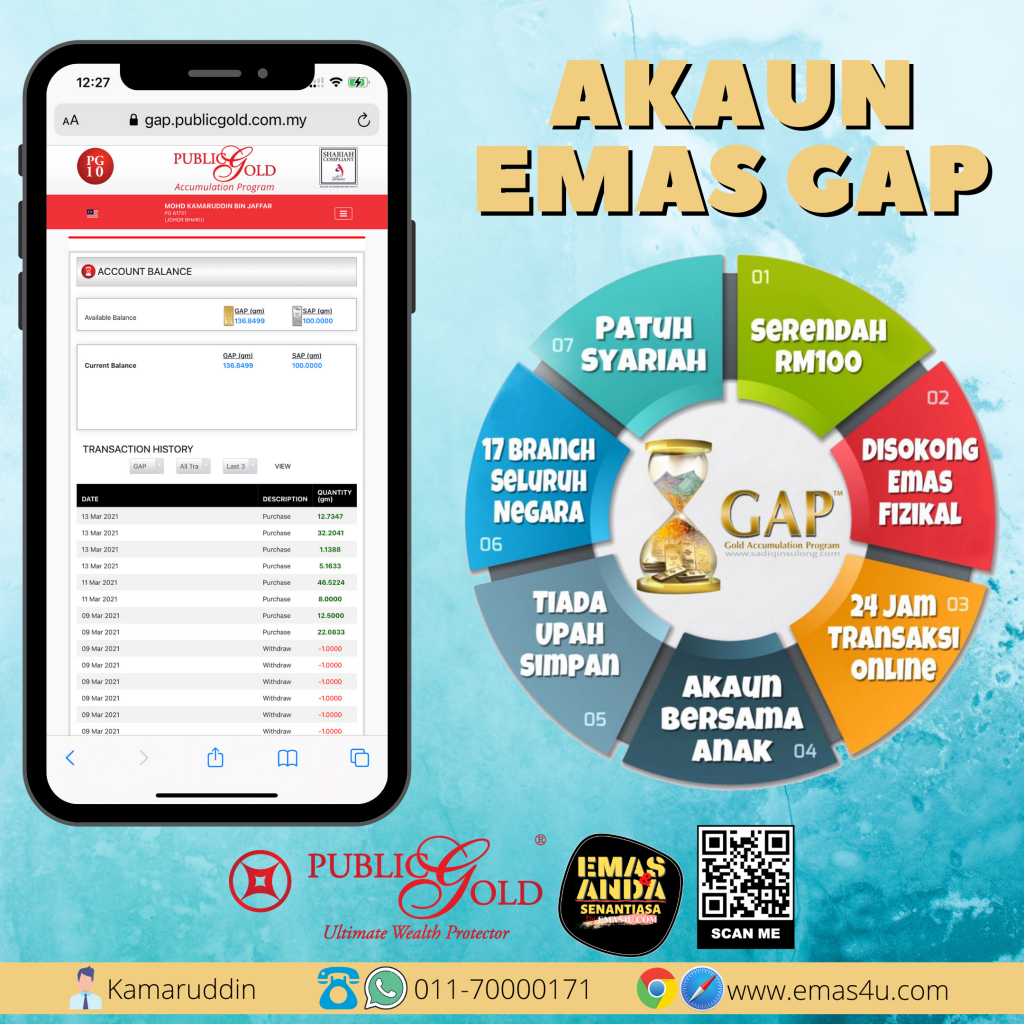 Akaun emas GAP adalah akaun simpanan emas yang sangat fleksible. Public Gold merupakan perintis kepada simpanan emas digital pertama di Malaysia. Berikut merupakan 7-kelebihan utama mengapa akaun ini menjadi pilihan saya dan rakan-rakan saya