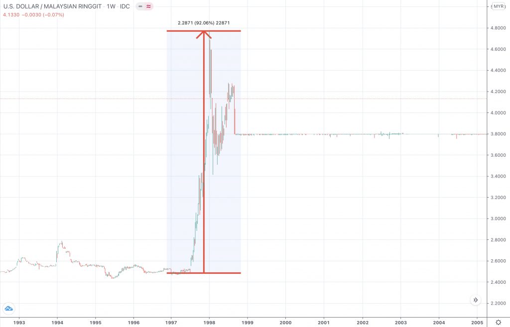 Sejarah telah tercatat bahawa pada tahun 1997 negara telah di kejutkan dengan penyusutan nilai Ringgit sebanyak hampir 93% berbanding US Dolar (RM2.47 kepada RM4.77). Harga barang naik sekelip mata untuk produk Lebih-lebih lagi produk yang di import