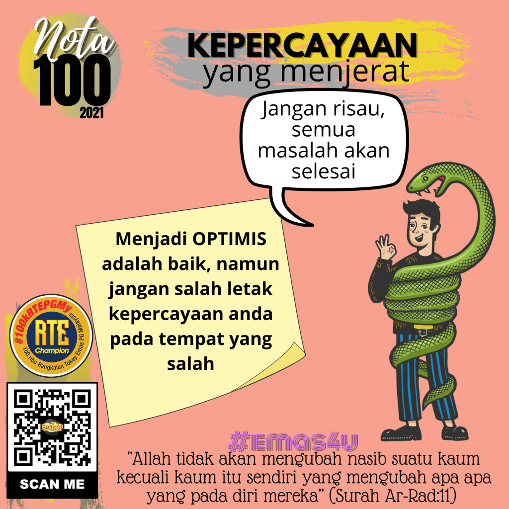 Sikap optimis ini adalah sangat baik untuk berjaya dalam apa jua yang kita impikan. Lebih – lebih lagi dalam membina kekuatan kewangan peribadi. Saya fikir kita perlukan dos yang mencukupi kita untuk terus fokus.